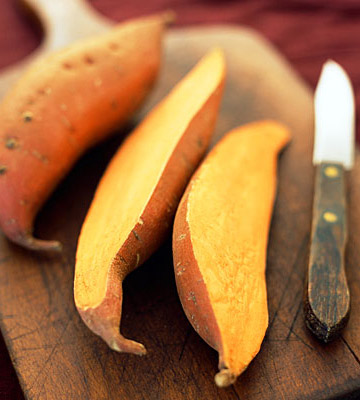 Sweet potatoes contain beta-carotene that not only combats free radicals, but also helps fight aging by increasing production of collagen and