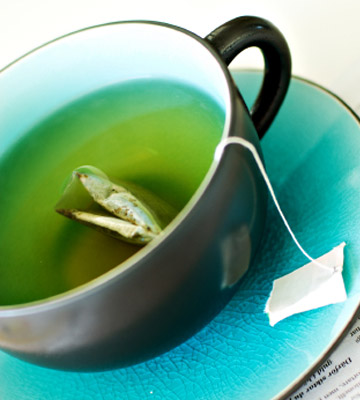 Brew a cup of green tea and chill it in the fridge. Then, soak a couple of cotton balls in the tea and place them over your eyelids. The caffeine temporarily tightens the skin around your eyes by drawing out excess water.