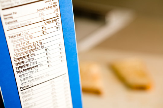 The numbers you see on the nutrition label are given on a per serving basis, so to lower the numbers of calories, saturated fat, sugars, and sodium, some food manufacturers make their products look healthy by downsizing the serving portion. Sometimes, the recommended serving size gets a bit ridiculous. Many cereals, for example, base their nutrition information on 1/2-cup serving size, but who eats just 1/2 cup of cereal for breakfast?This often misleads us into believing we're eating much fewer calories than we actually are: If you open, say, a bag of chips, glance on the back and see that it has only 100 calories, you may be inclined to eat the whole bag. However, that's 100 calories per serving. "If there are four servings in that bag of chips and you eat the whole bag, then you've just eaten 400 calories," says Solomon-Miles.