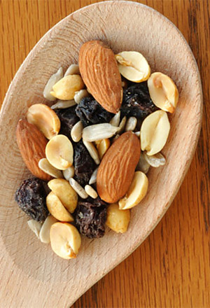 They're convenient, plus they're loaded with fiber, protein and heart-healthy fats, which helps keep hunger at bay. Opt for unsalted varieties of almonds, peanuts, sunflower seeds and dried fruit, and grab a handful when you get the munchies.