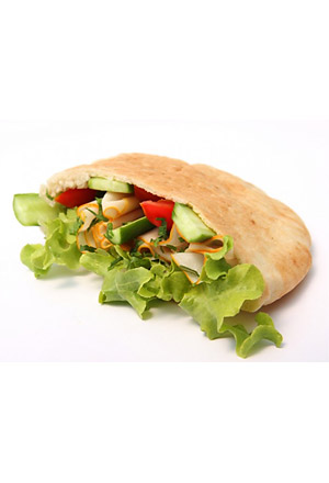 Take a whole grain pita pocket and stuff it with some skim cheese, lettuce, tomato and cucumber slices. This satisfying snack is a great way to add more veggies to your diet, and the protein and fiber will help fill you up.