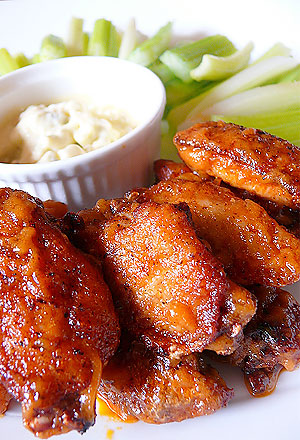 Replace 2 breaded wings (240 calories) with 2 spicy wings (85 calories) and you'll decrease the damage by 155 calories.
