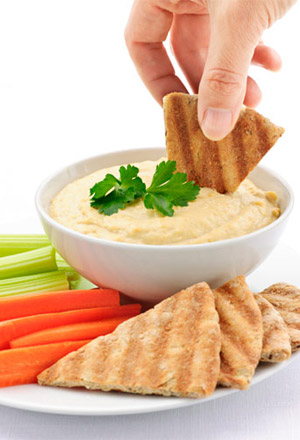 Incorporate healthier pre-meal snack options. For example, swap the bread bowl for whole-wheat pita with a low-fat bean dip.