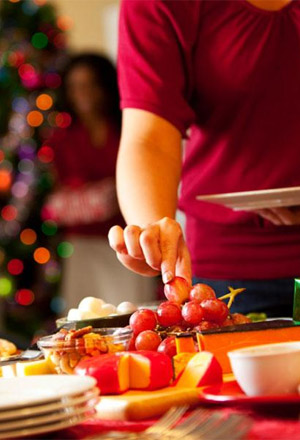 Don't skip meals prior to a holiday party or dinner. You are less likely to overeat if you have eaten well throughout the day.