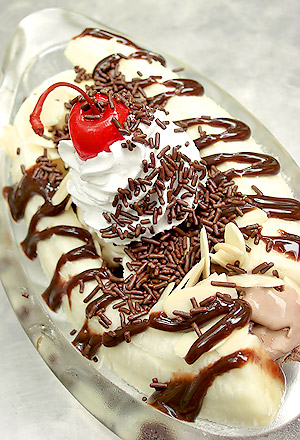 Swap your ice cream with a low-fat plain frozen yogurt topped with fresh berries, suggests Michael Sena, a fitness expert and coauthor of Lean Mom, Fit Family. If you're craving chocolate ice cream, just drizzle a little chocolate syrup on top.