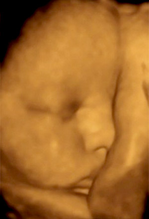 By the ninth month, the average baby is about 47 cm (18.6 inches) and weighs 2.6 kilograms (5.8 pounds). The brain has been developing rapidly and the lungs are nearly fully developed. The baby continues putting on half a pound a week until about week 37, at which weight gain slows down. A pregnancy is considered 'at term' once 37 weeks has been completed -- baby is due to arrive anytime! You may feel Braxton Hicks contractions, which get your body ready for labor. The baby's head is usually positioned down into the pelvis by now -- called lightening -- which can cause some pressure on the pelvic floor.