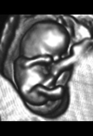 During the first month, the baby measures about 0.1 to 0.2 mm. The heart and blood vessels continue to develop. The structures that eventually form the face and neck are becoming evident. And the lungs, stomach, and liver start to develop. A home pregnancy test is now positive.