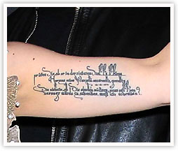 Guess which singing icon sports a German script tattoo on her arm.